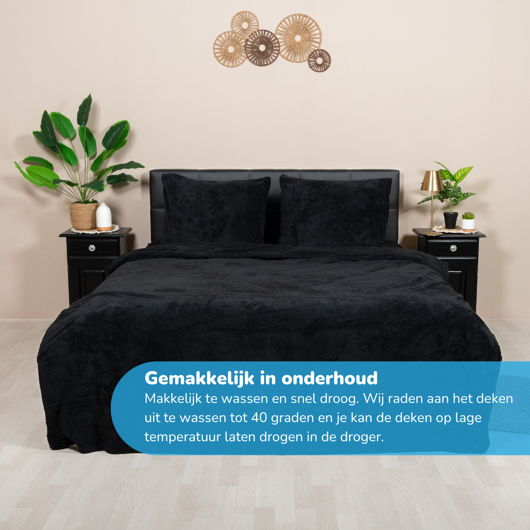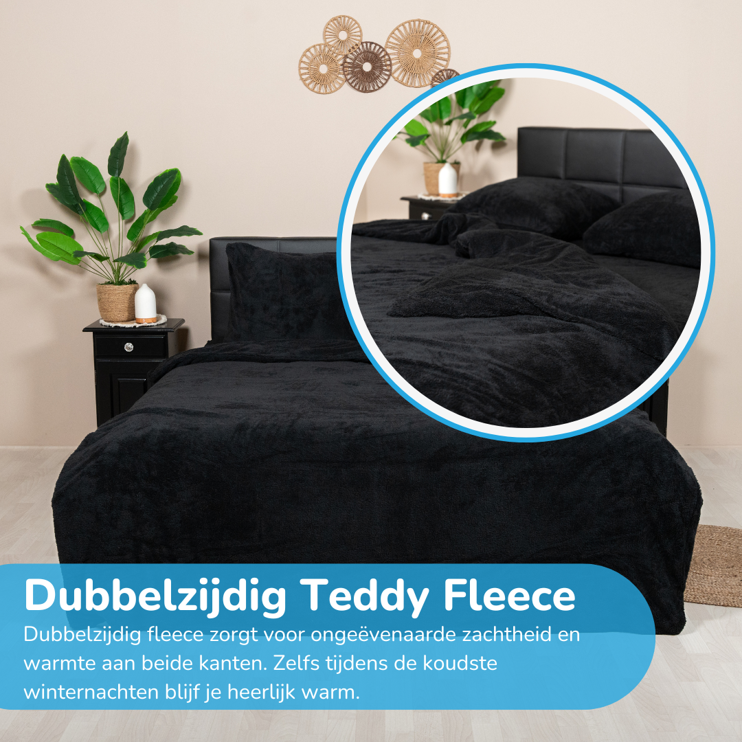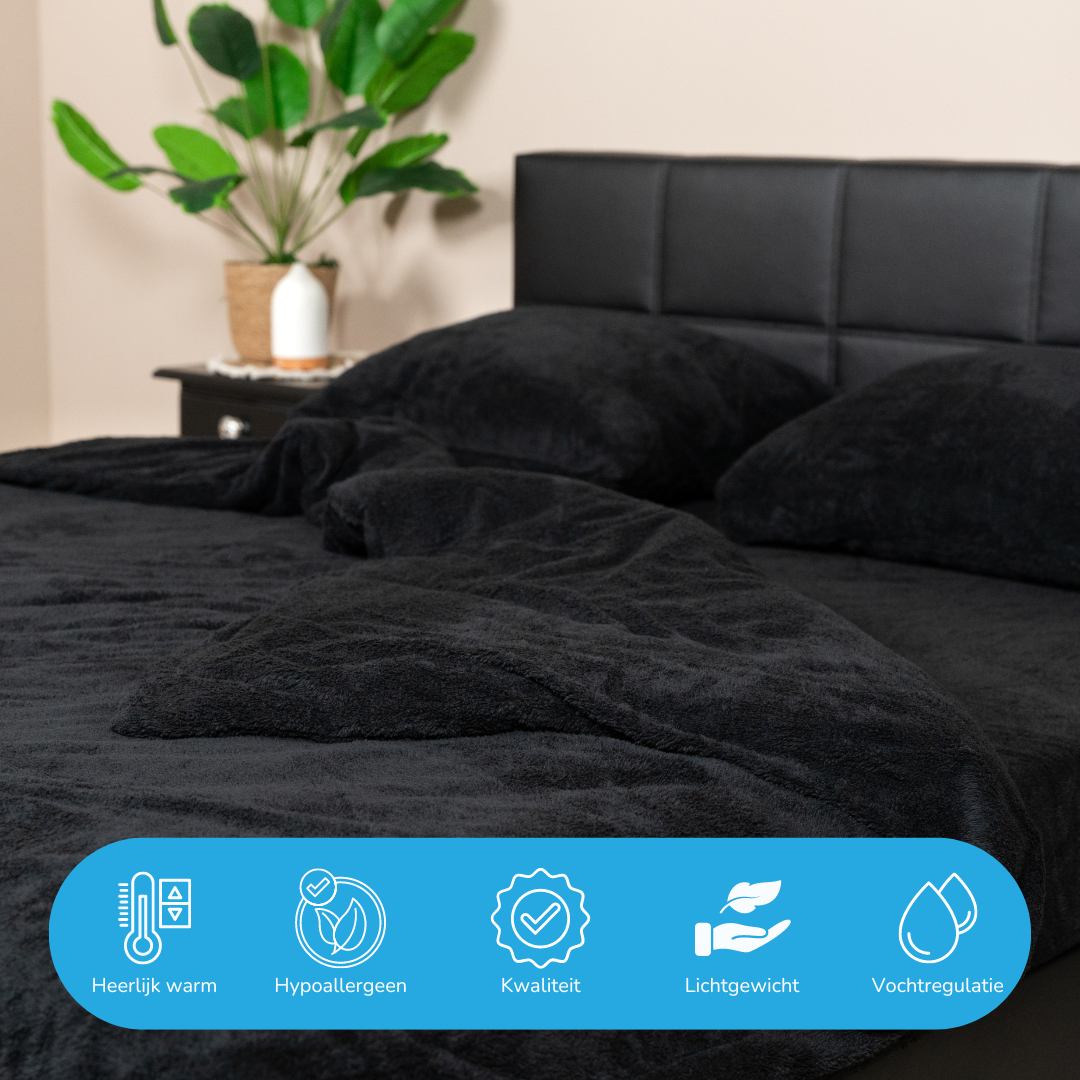 Teddy Fleece Dekbedovertrek – “Charcoal Black”