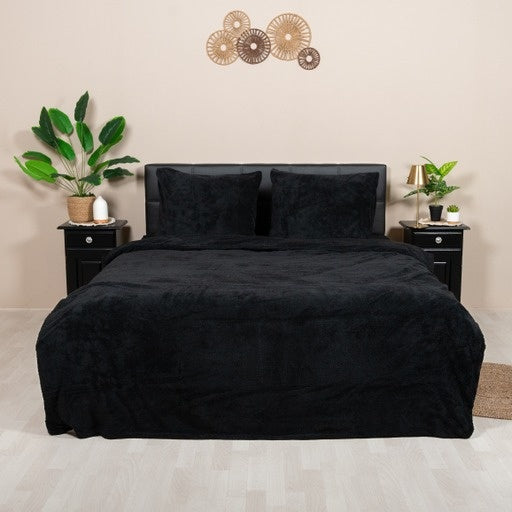 Teddy fleece dekbedovertrek - zwart - 2 kanten teddy